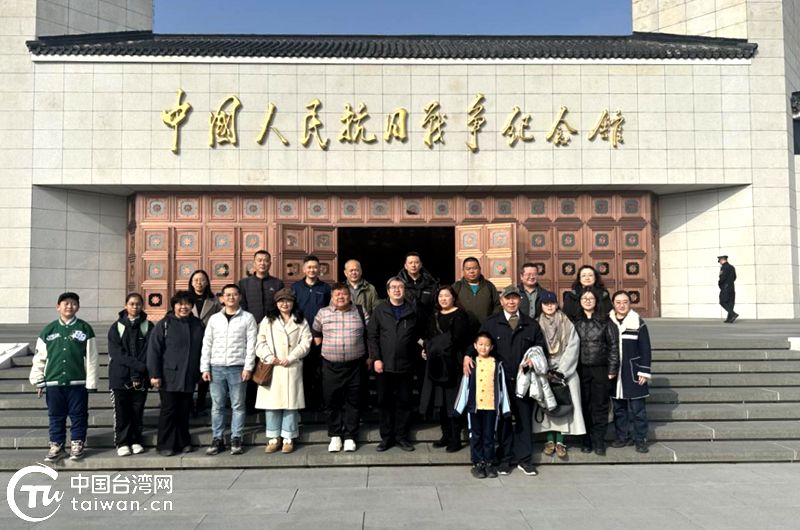 台胞在中国人民抗日战争纪念馆前合影。(中国台湾网发)