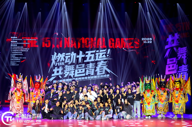 中国台湾网12月1日讯 近日,江门市文化馆灯火璀璨,掌声雷动,以“燃动十五运!共舞邑青春”为主题的第二届“邑湾舞道荟”两岸青年街舞交流晚会在此激情上演。近300名有着共同血脉、共同文化、共同热爱的台湾嘉宾与粤港澳大湾区青年齐聚江门,共赴一场跨越海峡的青春之约。继2024年首届活动成功举办后,本次活动进一步拓展规模和影响力,吸引更多台湾青年关注江门、关注粤港澳大湾区。