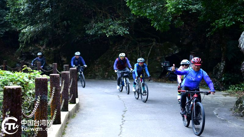 骑行队伍在溪源庵骑行。(中国台湾网发)
