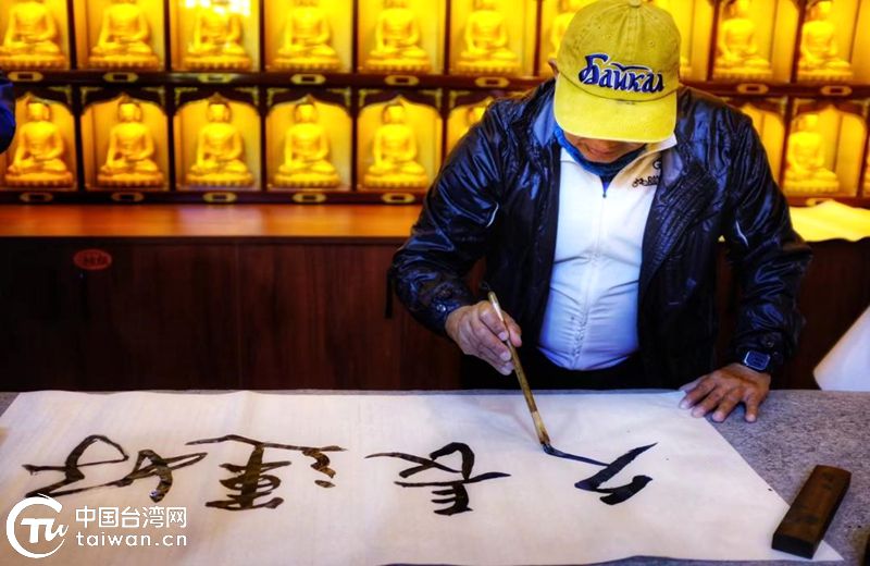 台胞吴先生即兴泼墨题字。(中国台湾网发)