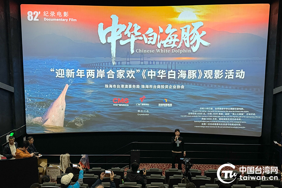中国台湾网12月28日讯 为深化两岸交流融合,增进同胞亲情福祉,凝聚两岸同胞保护生态、守护自然的共识,12月28日,珠海市台港澳事务局联合珠海市台商投资企业协会举办“迎新年两岸合家欢”《中华白海豚》观影活动。近百名两岸同胞齐聚一堂,通过主创分享、趣味问答及共同观影等一系列丰富环节,在视觉享受、艺术熏陶与温情交融中,共同迎接新年的到来。