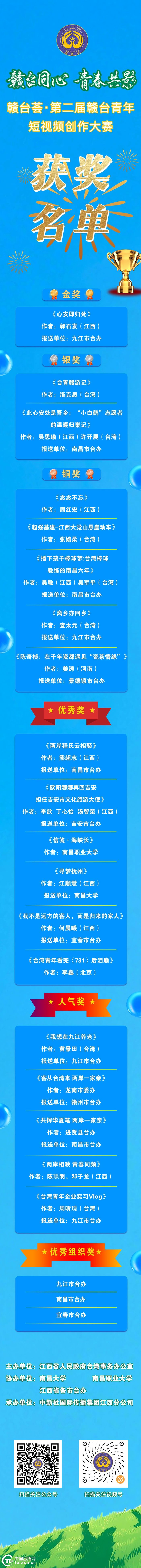 揭晓!赣台荟·第二届赣台青年短视频创作大赛获奖名单公布