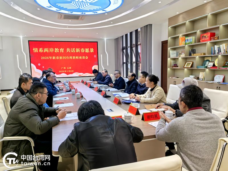 1月8日,玉林市在玉林师范学院举办2026年新春慰问台湾教师座谈会,市校领导与台湾教师代表欢聚一堂,共叙情谊、共商发展、共迎佳节。