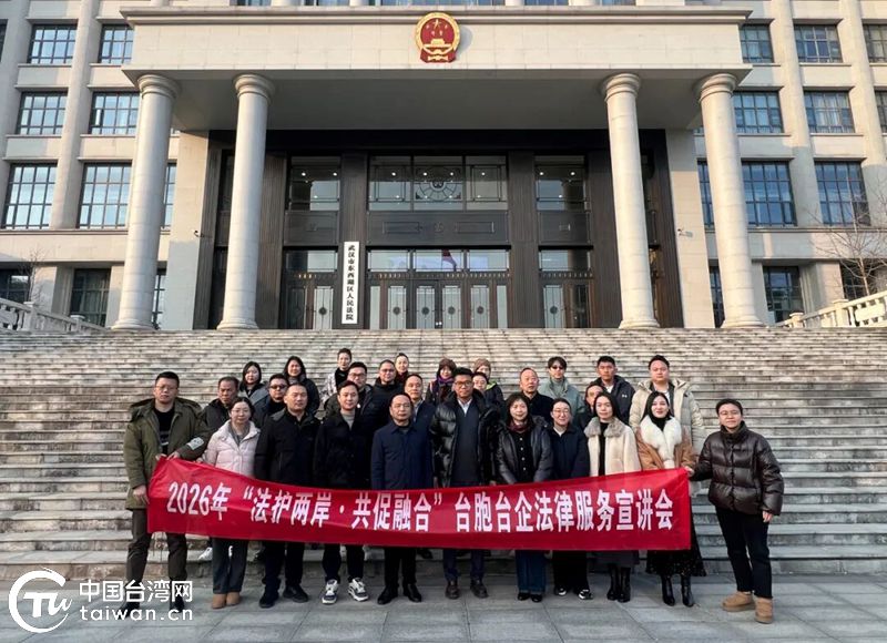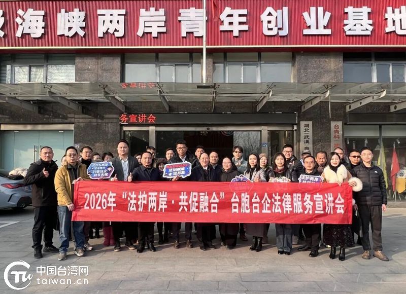 中国台湾网1月27日讯 为深入贯彻中央及湖北省武汉市对台工作部署,切实保障台胞台企合法权益,助力台胞台企更好融入大陆发展大局,2026年1月23日,由武汉市台办台商服务中心牵头,东西湖区台办承办的“法护两岸·共促融合”台胞台企法律服务宣讲会在东西湖区海峡两岸青创基地成功举办。在汉中小台资企业(个体工商户)代表、台胞代表等40余人齐聚现场,共赴这场法治赋能之约。
