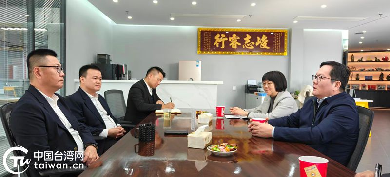 方涛一行与东莞台商协会会长、信易集团总经理吴峻睿座谈。(中国台湾网发)