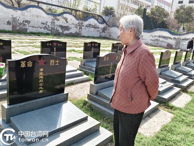台属高女士在其大哥(烈士)的墓前久久伫立,深情缅怀。(中国台湾网发)