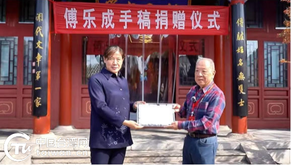 傅斯年侄子、台湾学者傅乐治先生向聊城市傅斯年陈列馆陈列馆捐赠珍贵藏品。(中国台湾网发)