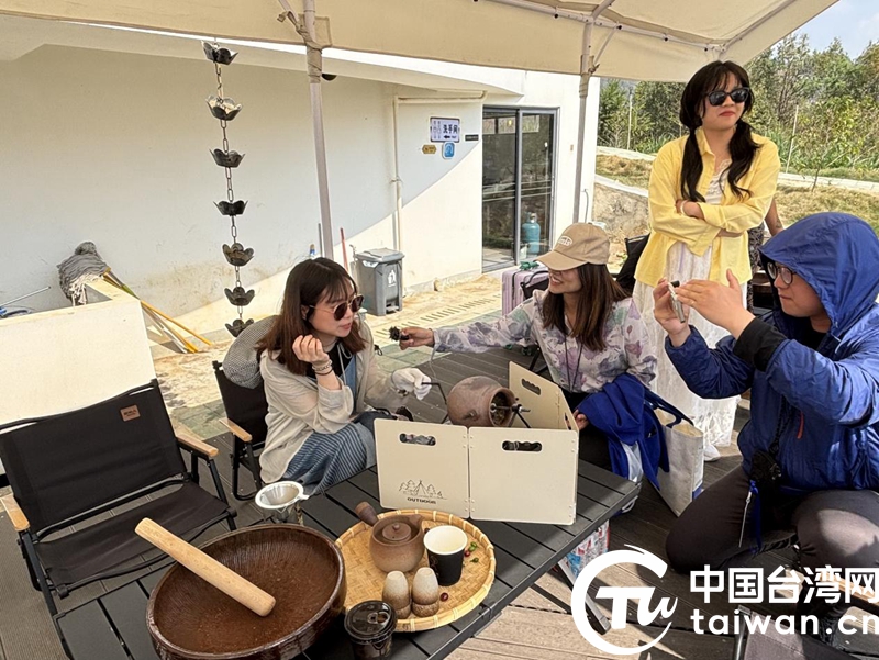 在耿马傣族佤族自治县孟定镇南汀画院,台湾青年、自媒体人体验白棉纸制作,该技艺是被誉为“中国古代造纸术活化石”的国家级非遗。(中国台湾网记者 刘琳 摄)