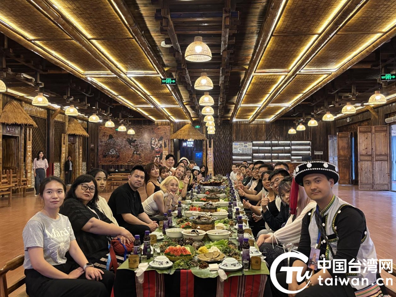 采访团一行在沧源佤族自治县拍摄、体验佤族特色美食“佤王宴”。(中国台湾网记者 刘琳 摄)