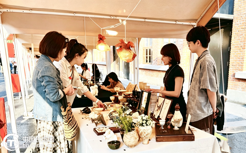台湾艺术家在陶溪川春秋大集上摆摊交流。(中国台湾网发)