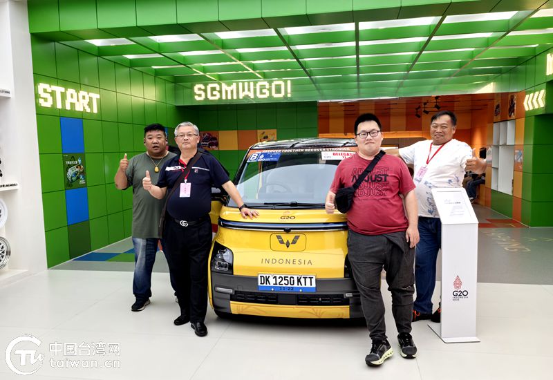 台胞争相与新能源汽车合影留念。(中国台湾网发)