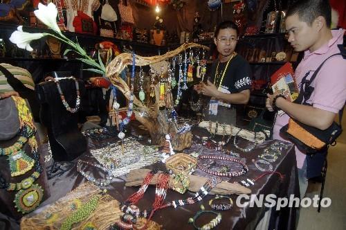 10月29日,台湾少数民族饰品在厦门文博会上受欢迎。当日,第二届海峡两岸(厦门)文化产业博览交易会在厦门开幕。 中新社发 王东明 摄