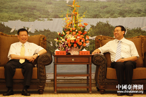 漳州市委书记刘可清会见参加第二届海峡论坛的部分台湾嘉宾。(中国台湾网 肖燕 摄)