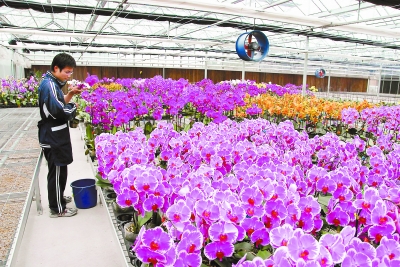 随着农博会暨花博会的临近,漳浦台湾农民创业园里的台资企业纷纷提前筹备,期待在盛会上能够找到更多商机。图为园区内的台企漳州钜宝公司员工正在大棚内精心护理蝴蝶兰。 陈毅聪 蓝智伟 摄