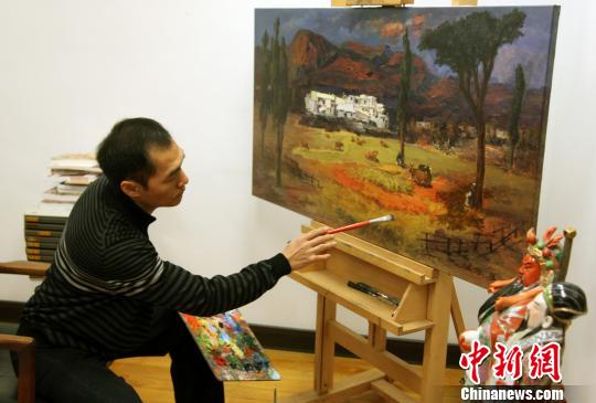 中新网高雄2月13日电(记者陈立宇)在台湾高雄的画家群体中,46岁的杨腾集是一个比较特别的人物,因为他曾在北京的中央美术学院深造,师承靳尚谊、孙为民、杨飞云、朝戈、戴士和等油画名家。