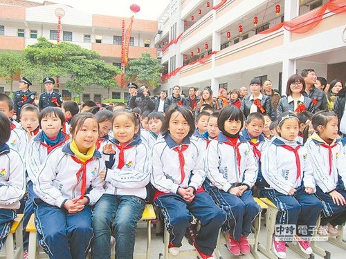 福建泉州石狮市灵秀镇华山村的华山小学23日进行新校舍揭牌仪式。(图自台湾《旺报》)