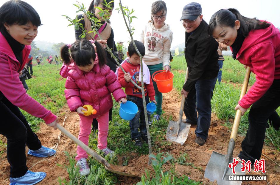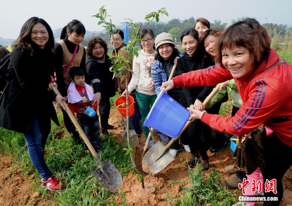 3月14日,来自福州市台胞投资企业协会“牵手之家”的台胞台属代表正在种植“海峡巾帼林”。当日,福建省妇联、福州市妇联、福州市台联等联合组织两岸姐妹在福州闽侯县白沙镇孔元村开展“弘扬生态文明 、共建美丽家园--各界妇女共植‘海峡巾帼林’活动”,在榕机关干部、台胞台属代表、“巾帼文明岗”、优秀女性、环保文明家庭代表等海峡两岸姐妹共140人参加了该义务植树活动,共同植下碧桃、红千层等树苗500多株。