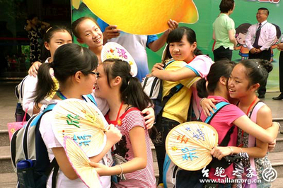 配对的两岸小天使相拥出行将共同渡过愉快的家庭接待日 郑岚/摄影