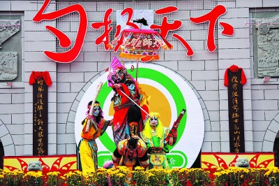 12月8日,在2008年中国(沙县)小吃旅游文化节暨海峡两岸民间艺术邀请赛上,来自海峡两岸的14支民间艺术表演队为观众呈现了丰富多彩的民间艺术表演。图为来自台 湾高雄市小港区义玄宫的民间舞蹈跳钟馗。 (郑长辉 茅露姬 摄)