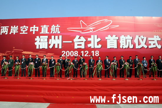 东南网12月18日讯 (记者 孙靖) 今天上午11:30,“两岸空中直航福州-台北首航仪式”在福州长乐国际机场举行,这标志着州至台湾空中客运直航包机正式拉开帷幕。今后从福州往返两岸不用再经第三地中转。榕台交流交往又一次实现了重大突破,两岸“三通”从此翻开崭新的一页。
