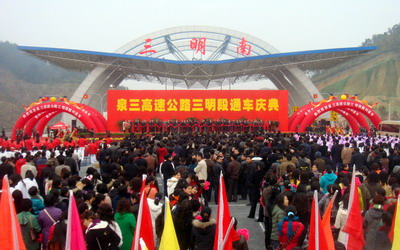 12月25日,泉三高速公路三明段通车庆典在福建三明举行。泉三高速公路(泉州至三明)全长265公里,是福建省规划建设“三纵四横”高速公路网的重要组成部分,全线开通后将缩短福建内陆山区与沿海的时空距离。三明段长约159公里,采用双向四车道高速公路标准建设。新华社发(卢立杰 摄)