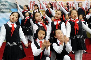 3月11日,福州教育学院附属第一小学的两岸小学生同唱一首歌。新华社记者姜克红摄