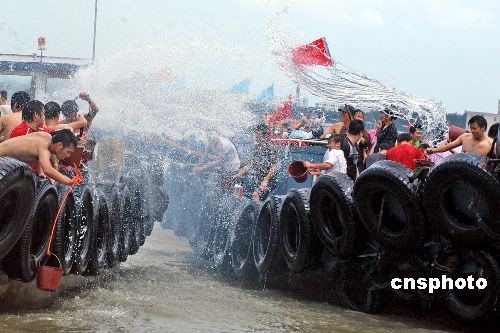 第三届闽台对渡文化节暨蚶江海上泼水节,在中华民族传统的端午节——闽南人所称的“五月节”,二十八日下午在福建石狮蚶江镇古渡头盛大开幕,近十万石狮乡亲欣赏了由两岸同胞共同演绎的这场文化盛宴,由一百多名台湾鹿港乡亲组成的参访团参与盛会。