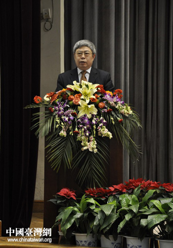甘肃省委常委、副省长刘永富在大会上讲话。(图片来源:甘肃省台联)