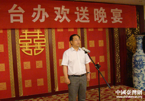 甘肃省台办主任赵少智在欢送晚宴上致辞。(图片来源:甘肃省台办)