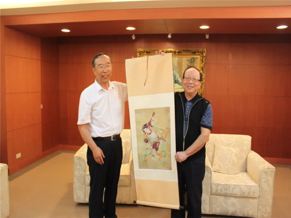 中国台湾网6月29日台北讯 6月21日,甘肃省政协副主席栗震亚率领甘肃文化交流团,在台北拜会了国民党名誉副主席蒋孝严先生,介绍了赴台参加“海峡两岸共祭人文始祖伏羲大典”的有关安排和首届丝绸之路(敦煌)国际文化博览会相关情况。