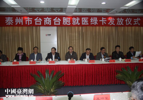 泰州市台办建立台商就医保健绿色通道并发放就医绿卡。(图片来源:泰州市台办)