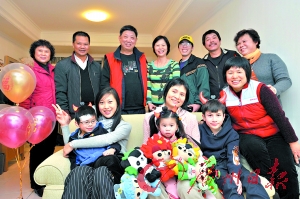 几分钟后,在黄阿姨的房间里就传来了阵阵欢笑声,黄阿姨丈夫的妹妹朱女士与她在台中的双胞胎妹妹一家人,终于在相隔多年后重逢了!广州双胞胎姐姐这边有朱女士、她的嫂子黄阿姨以及黄阿姨的妹妹妹夫一家,台中双胞胎妹妹这边则有双胞胎妹妹夫妇、他们的三个孩子以及孩子们的姑姑、姑父、堂姐和叔叔。