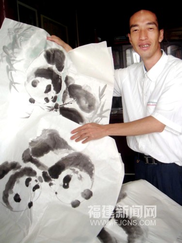 9月24日,福建泉州威远楼画家吴培植先生潜心熊猫国画创作,已经画了78幅“熊猫”作品的他现正在构思一幅10米熊猫长卷。吴培植先生因画大熊猫与海峡对岸乡亲结缘,他曾为金门县政府画《团团圆圆》、《合家欢》赠送给马英九先生和吴伯雄先生。最近,受台北有关方面的邀请,吴培植先生将在台北举办“团团圆圆”百幅熊猫画展。(记者傅丹丹)