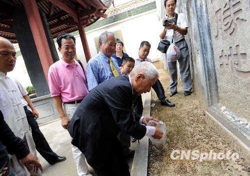 王珠庆在闽王祠内乞土胜地碑前取土。中新社发 刘可耕 摄