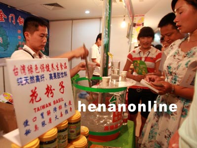 6月28日,河南驻马店,来自台湾的水果、特色小吃等特色农产品使中原民众眼前一亮。当日,2010年全国农产品加工业投资贸易洽谈会在驻马店市拉开帷幕,这次洽谈会吸引27个省区市120个代表团、参会人员达到16700多人。(记者 王中举)