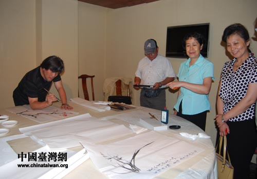 台湾书画家与主持合影留念(图片来源:东城区台办)
