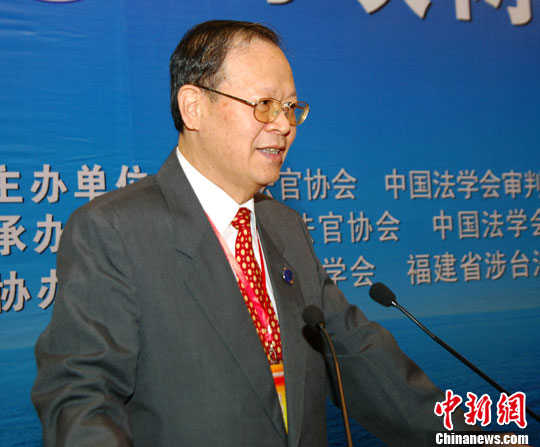 7月29日,“海峡两岸司法实务研讨会·2010”在福州福建会堂开幕。海峡两岸法学交流协会(台湾)理事长廖正豪在会上表示:本次研讨会要有效化、共同化,从各方面更好辅导协助台商。中新社发 张丽君 摄