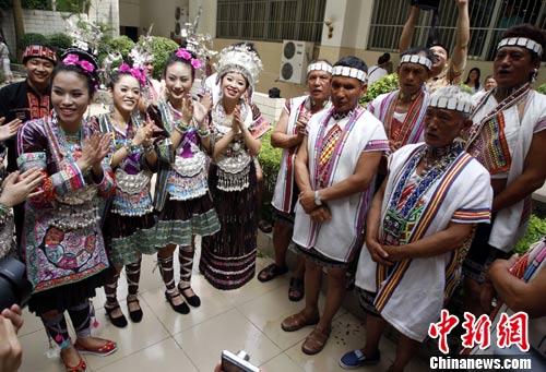 特写:海南黎族村落迎台湾少数民族同胞对歌共舞
