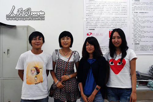谢钧(右二)与学生记者合影留念。图片来源:人民网