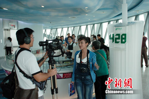 10月11日,来自台湾中天电视《台湾脚逛大陆》节目栏目的拍摄人员在新广州电视塔107层,距地面428米处的广州塔造型邮政箱前摄制节目,此前,该拍摄组已到广州长隆动物园、广州珠江啤酒厂等地方进行了采访拍摄。