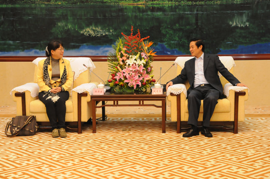 中共四川省委书记刘奇葆会见应邀请来访的台湾长青村敬老院负责人陈芳姿 (李华军摄)