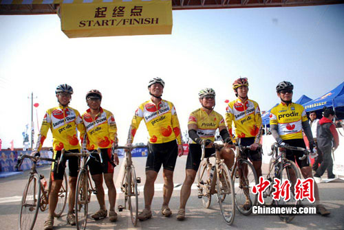 12月2日,2010首届环鄱阳湖国际自行车大赛第二站在江西省九江市拉开战幕,来自台湾的6名骑士吸引了众人的注意,其中两位50多岁的亲兄弟选手也在此次自行车大赛中征战,他们表示“能顺利完成比赛就行”。