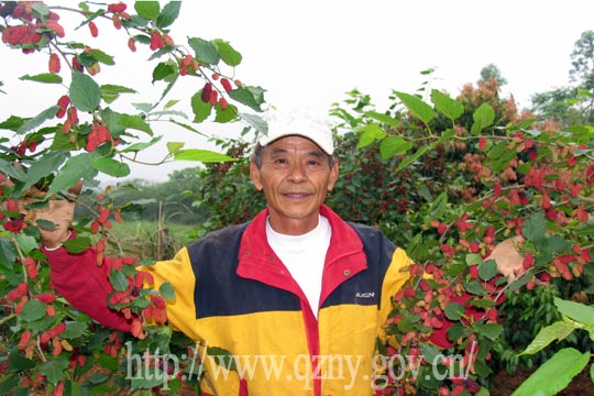 图为台湾农民企业家赖忠治在钦州的长果桑园里