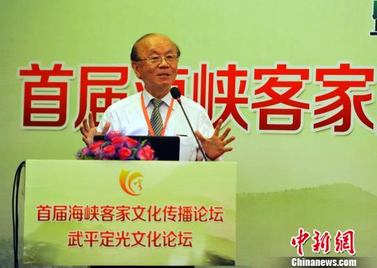 中华海峡两岸客家文经交流协会秘书长、台湾世新大学教授黄肇松作了题为“加大定光文化传播,推动客家文化远播”的主旨演讲。 张斌 摄