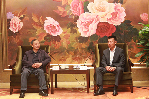 四川省台办主任周敏谦(左)与绵阳市长刘超(右)等座谈交流,交换推进对台工作意见。