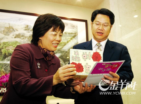 羊城晚报讯(文聪) 昨日上午,东莞市委书记刘志庚和副市长江凌分别收到了两张充满童真童趣的新年贺卡,这份由小朋友们亲手制作的礼物让他们觉得很温暖。江凌不仅盛赞东莞台商子弟学校的“成人礼”传承了中华民族的传统美德,而且还建议教育部门在东莞本地的学校中选取试点,推广该仪式。