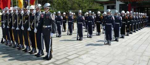 三军仪队在“梅花”等组曲中盛大演出操枪致敬。(中评社 康子仁摄)