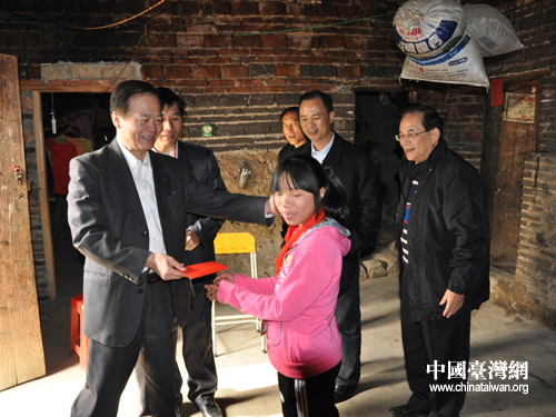 中国台湾网12月22日清远消息 日前,经广东省清远市台办积极牵线搭桥,在佛山办学经商的台商黄良华先生积极献爱心,在清远市委台办主任何久斌的引领下,看望并捐助了连南县南岗中心学校贫困学生唐三妹。