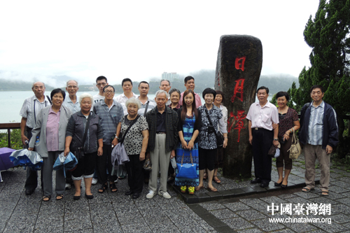 江门市台胞台属赴台探亲旅游团日月潭合影留念。(图片来源:江门市台联)