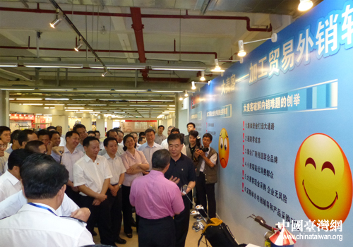 中国台湾网10月9日东莞消息 日前,全省加工贸易转型升级现场会在东莞市召开,中共中央政治局委员、省委书记汪洋,省长朱小丹等领导莅临东莞考察加工贸易转型升级示范企业,并到大麦客商贸公司参观东莞市加工贸易转型升级成果展,听取东莞市委书记徐建华介绍相关情况。成果展展出了东莞通过搭建生产力提升辅导平台、电子商务平台及公共创新平台等方式支持加工贸易企业提高技术研发能力、自创品牌、拓展内销的成效,得到省领导高度评价,大麦客集体内销平台也在会上得到高度肯定和广泛推介。